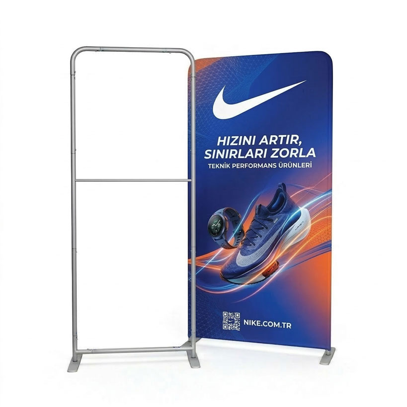 Zarif görünümü, hafifliği ve kolay kurulum avantajıyla 85x200 fabric display stand pek çok ortamda öne çıkar:
