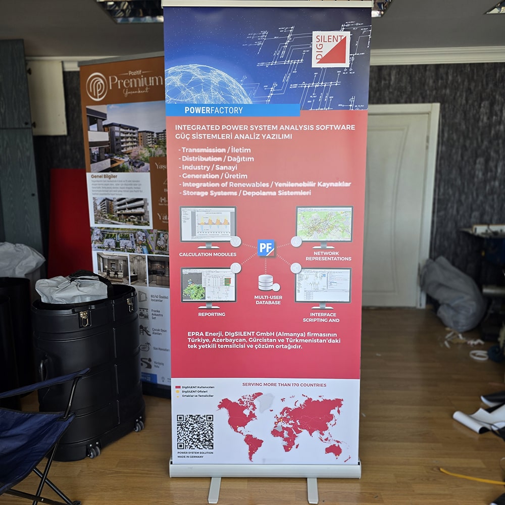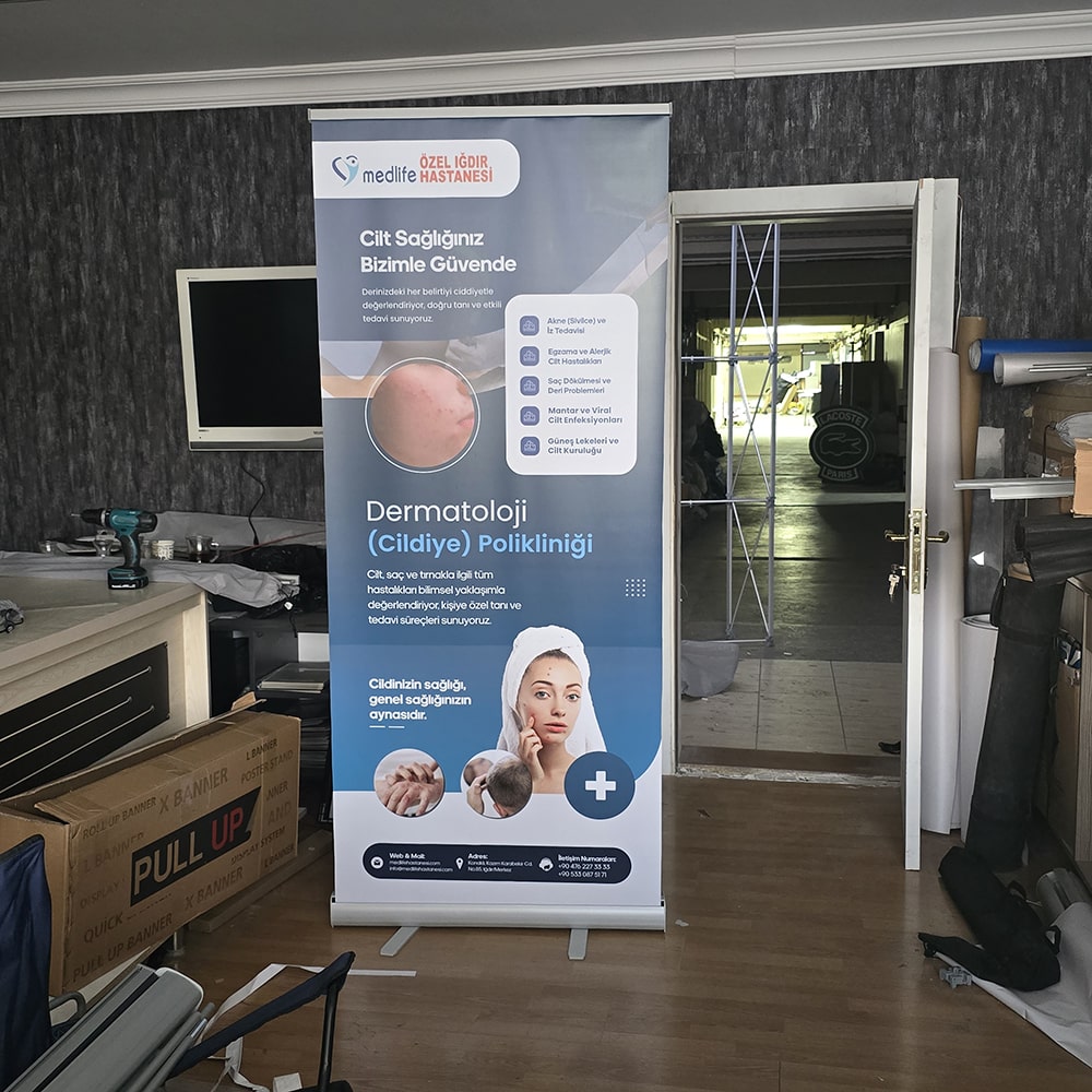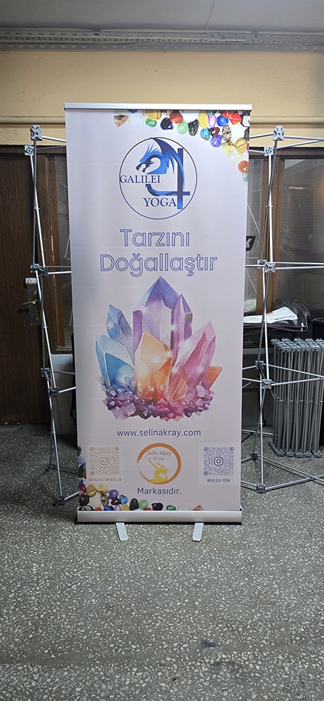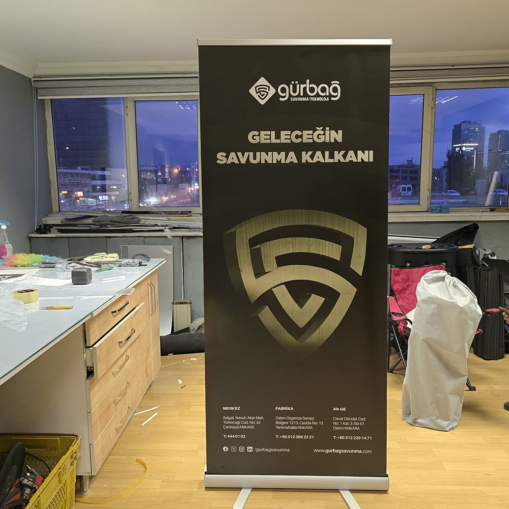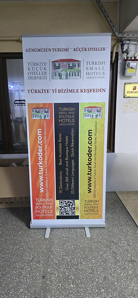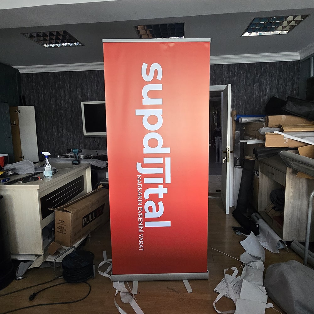 Roll up banner stand, bir etkinliğe giderken bavula sığan, varışta dakikalar içinde kurulan ve etkinlik bitince herhangi bir hasar almadan kasete geri sarılan en pratik sergileme çözümüdür. 85x200 cm, sektörün en yaygın kullanılan standart formatı olup dar koridorlardan geniş fuar salonlarına, mağaza girişlerinden kongre alanlarına kadar her ortama uyum sağlar.